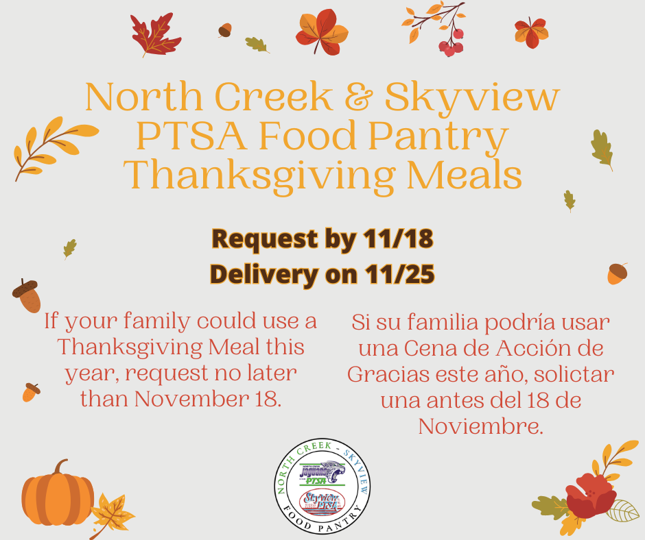 Any information gathered through ANY of Food Pantry forms will remain confidential and only our designated North Creek PTSA & Skyview PTSA Food Pantry Committee and select school staff will have access and will not disclose the information to any third party.